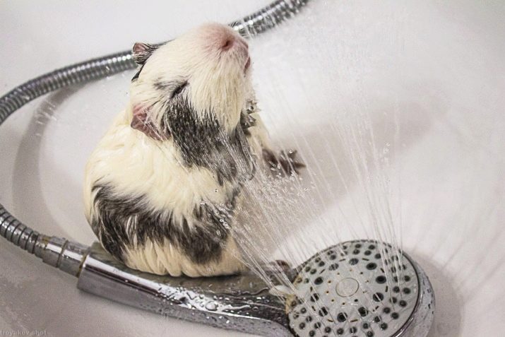 If the animal is healthy, if the conditions that you organized for it are favorable, you should not bathe it. For a rodent, water procedures will be stressful: for children who most often insist on a bath for a pig, it is worth explaining this immediately after purchase.