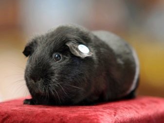 The coat color should be even, without inclusions of any other color and without bright yellow and peach shades. Also, the fur should not be very bright and always without yellowness. The eyes of guinea pigs are usually dark in color, but they are also red. The ears and pads on the paws have a pinkish or golden hue. The coat of a healthy animal is very thick, smooth and shiny. Its length is approximately 30 cm.