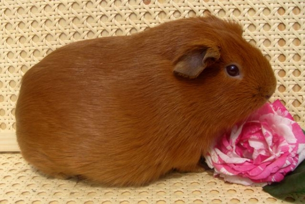 The very first feature of guinea pigs self is smooth and short hair. It is always monochrome. They are also distinguished by vigor, good nature and a good mind. Guinea pigs stand out for their physique. They have a small, neat head and a Roman profile. Their eyes are large, lively and intelligent, their ears are large, in the shape of rose petals.