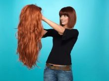 Beauty accessories, where Kanekalon is used for “fake” hair, look more like real hair. Even to the touch such hair is not too different from human, besides it does not pull out. Some even can be curled without fear of disrupting the structure of the material that imitates strands, and the curls will maintain their original appearance for a long time. Thanks to such things, you can drastically change your hairstyle for a while. In order not to make a haircut, trimming, for example, your own long hair, you just need to wear a four-piece wig with a bang or something else, and stay in this form for one evening. No wonder that experiment lovers have in their arsenal entire collections of women's wigs.