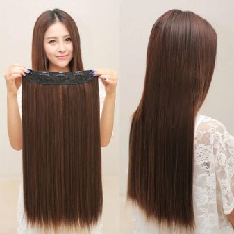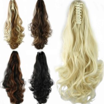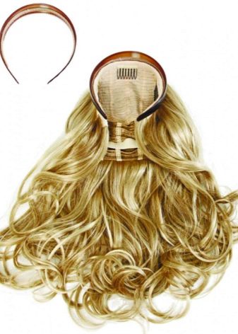 There are only three types of false hair: a wig, a chignon and hair for extension in the form of overhead strands. Chignons can be produced in the form of braids, tails, beams, and many other options. Artificial hair can be mounted on large rubber bands or hairpins and imitate a bezel. Laid on strands are available in the form of ribbons and bundles. The latter can be increased by any means.