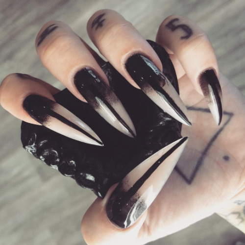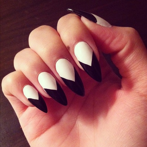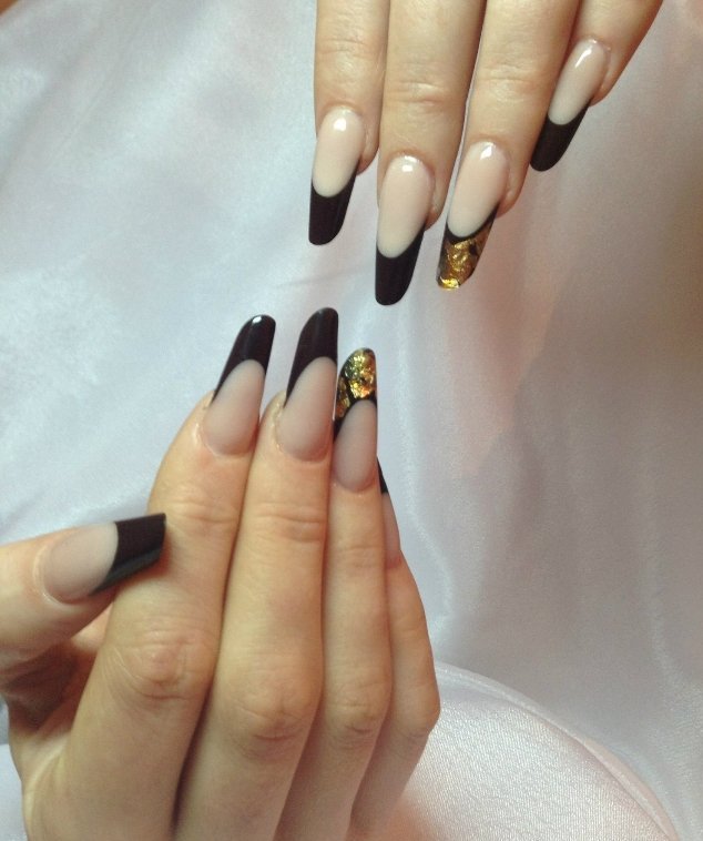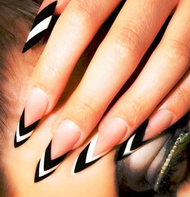 Most of the sharp forms are fully extended nails on the forms. Tips are not applied due to the fact that the zone of "stress" - the place where the tips is attached to the natural nail - is not able to withstand the load.