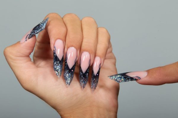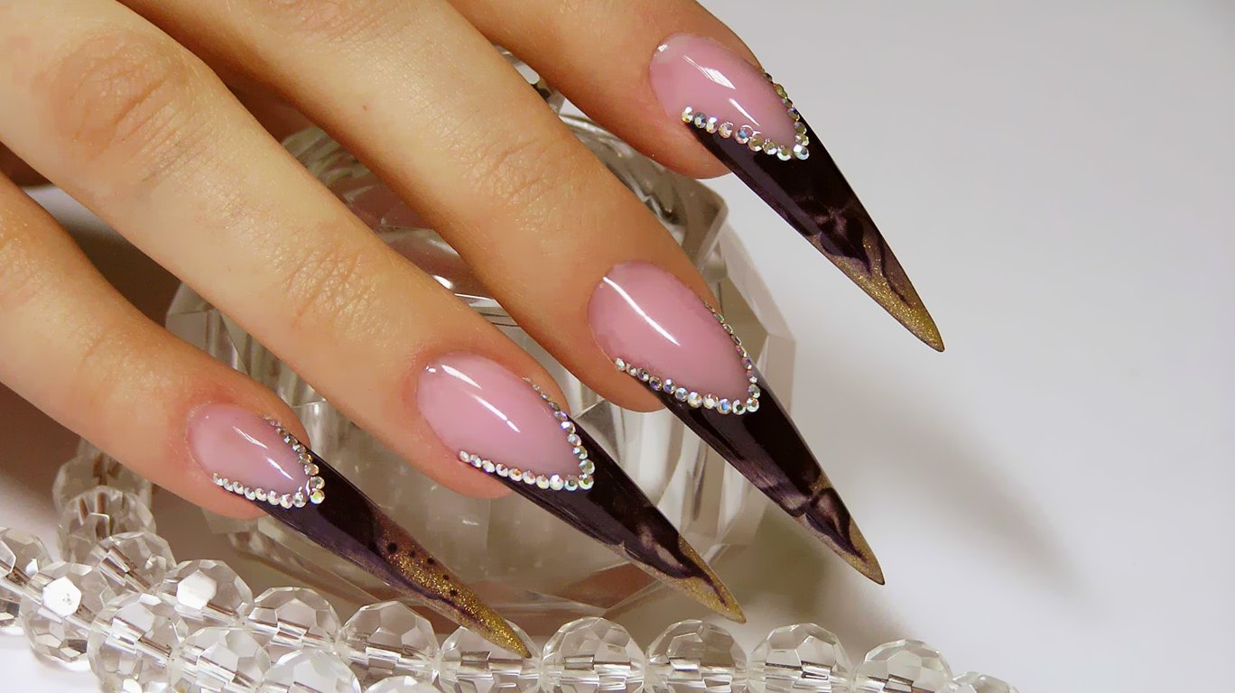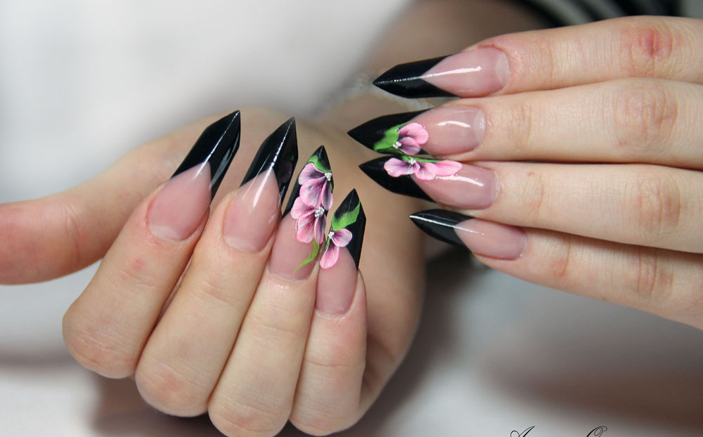 Sharp nails have a number of flaws. First, this form is not suitable for every type of hand and shape of the nail bed. Secondly, pointed nails are easily susceptible to deformation during physical work. Thirdly, you will have to give up everyday tasks, such as putting on tights, opening doors, typing on the keyboard, opening bottles and cans. This is due to the fact that the length and shape of the nails does not allow you to fully use your hand, and the nails will constantly rest against any surfaces and will break if they move incorrectly.