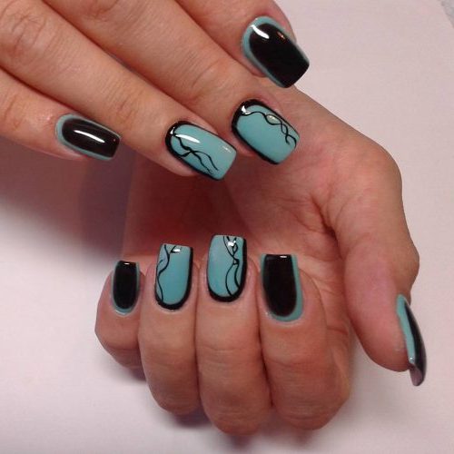 - Square - classic short or medium length shape. It happens with sharp and soft corners. For black manicure is better to choose a short length.