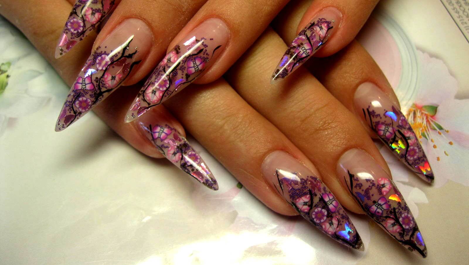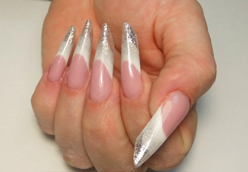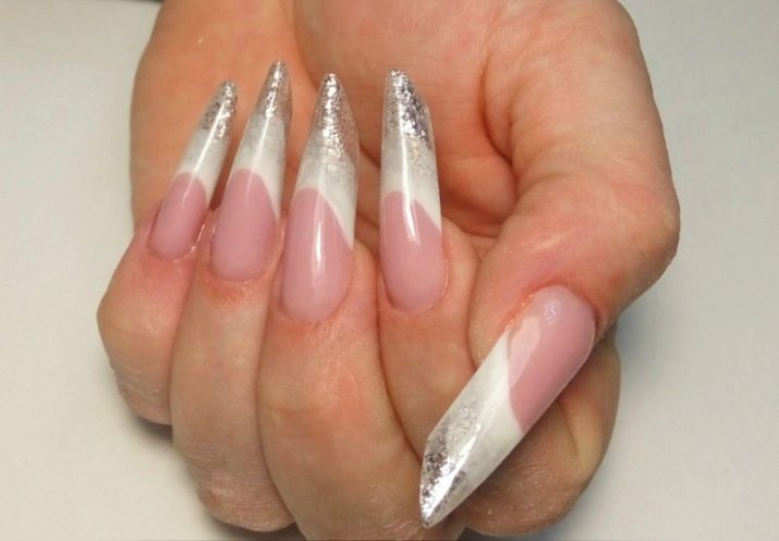 The most popular form for building long nails - stilettos. These nails, pointed to the ends, resemble the female weapon of the same name.
