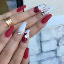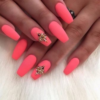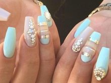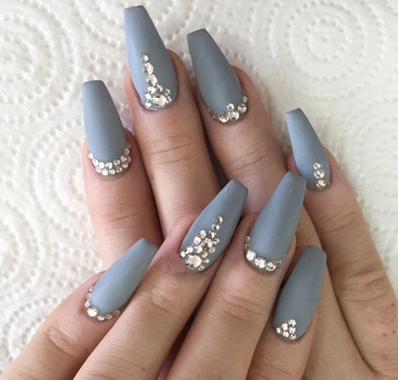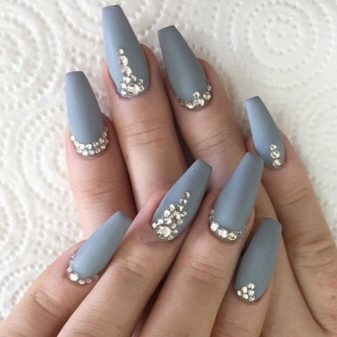 A matte finish, provided the length is suitable, cannot be spoiled with rhinestones. But it is important to adhere to the rule of moderation - you should not completely fall asleep nails with rhinestones, there should be no more than 20% of the surface of the nails.
