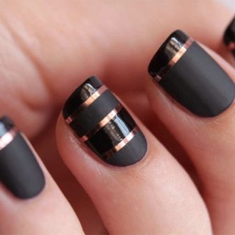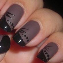 No less spectacularly look on the matte coating rain drops, made with glossy varnish, or stripes, arrows. One has only to show imagination, and your manicure will be the most non-standard and unusual.