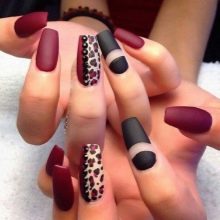 Peak direction - a combination of two textures of coverage. Mat and gloss will create a unique design of your nails. Geometric or graphic patterns on the nails are popular this season.