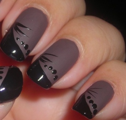 Matte nails will take on a completely different look if they are decorated with small patches of gloss.