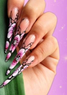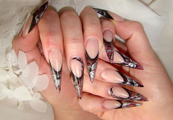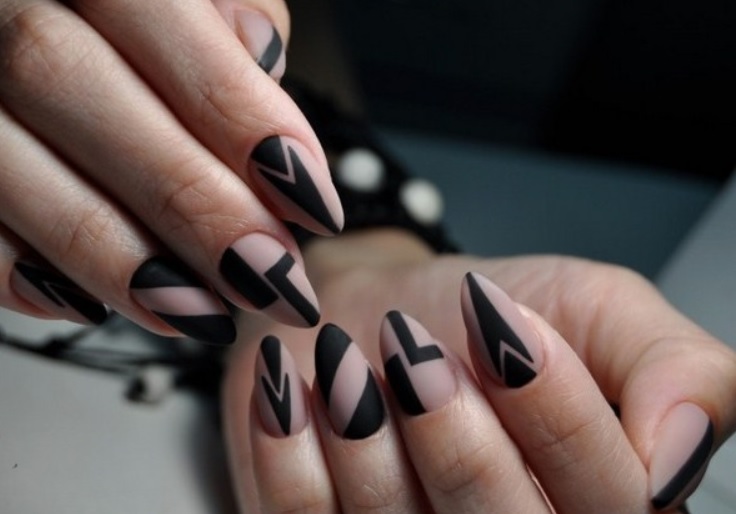 Very well-pointed nails suitable graphic manicure. Art paintings, abstract drawings - all of them wonderfully harmonize with the pointed form.