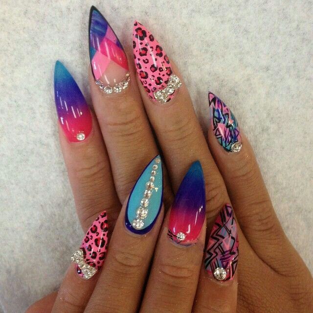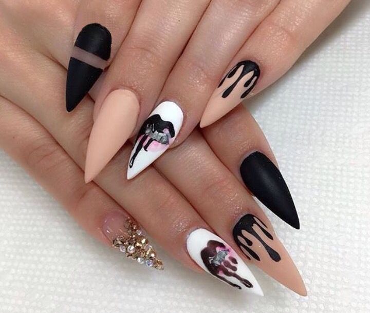 Sharp nails look bold and extravagant. Far from every woman decides on nail extensions that look like cat claws. Often, sharp nails have an extreme length. Triangular elongated stilettos and peaks are perfect for girls for various parties and celebrations. In everyday life, they deliver a lot of inconvenience.