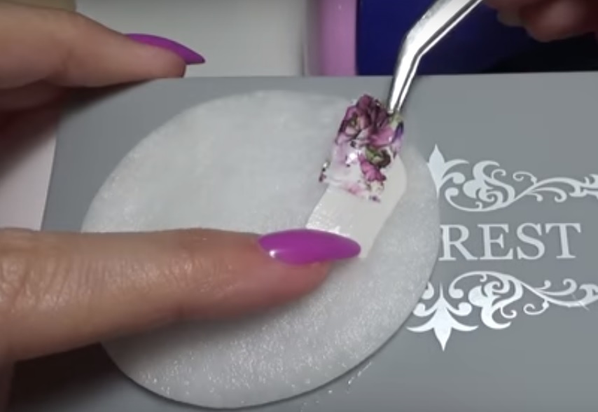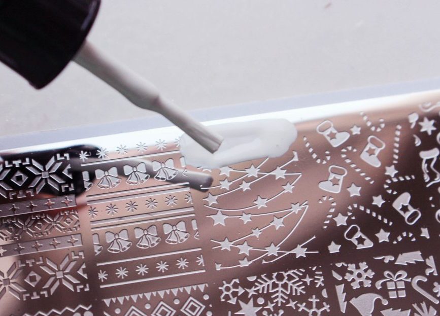 The stamp or stencil is pressed against the nail surface, and it stamps the image. The most convenient is a transparent stamp that transfers a print from a stencil covered with colored varnish. Special scraper will help get rid of excess paint. Sometimes they also use a metal disk with an engraved pattern.