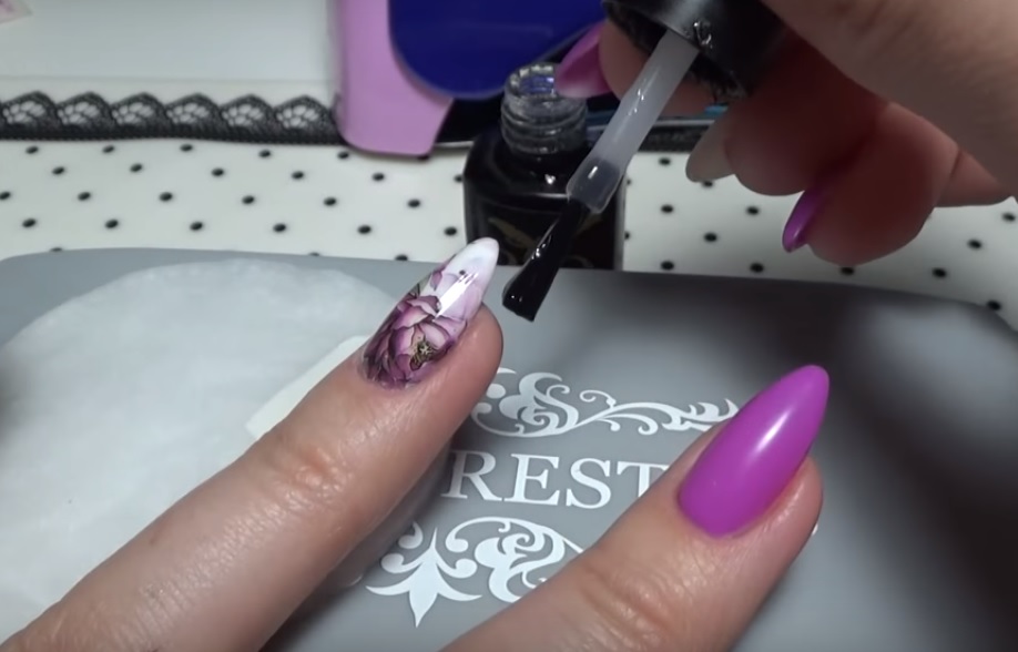 Art painting on the nail surface is made with acrylic paints.