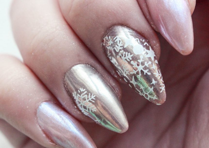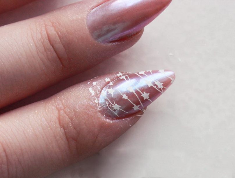 Irresistible manicure, created with the help of a popular technique called stamping.