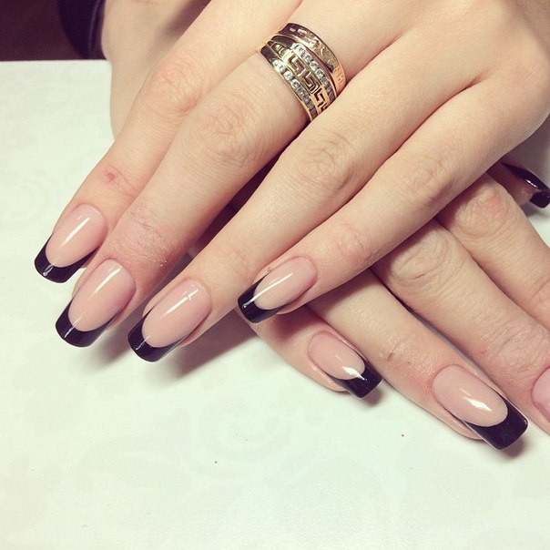 - Not bad french overcooked with the frame.Her nail is framed around the perimeter. Usually for this choose darker varnishes, contrasting with the rest of the colors on the nail plate.