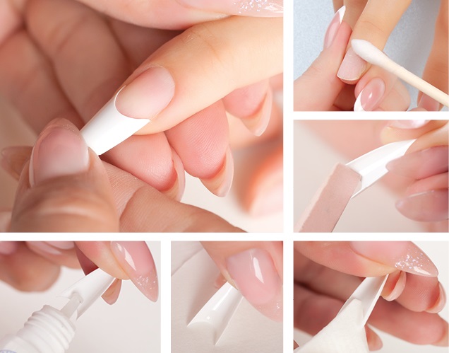 - Express. This type of extension is made with the use of fastening on each separate nail of a special tips of white color. As a rule, such elements are more dense than other similar details. After they are applied, go to the application of reliable gel fixers. Drying in this case is carried out under the action of an ultraviolet lamp.
