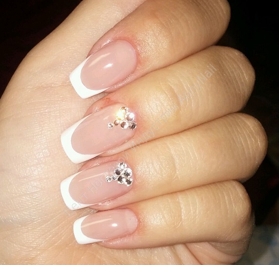 - Classical. This type of jacket is most common. With it, the free edge of the nail is painted white. It is permissible to mold it with the help of modeling tools, such as gel or acrylic. The use of tips is a budget option, which takes a minimum of free time.