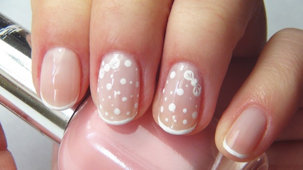 - Dotted decor is an interesting solution for a French manicure. Typically, for their application master apply special dotsy. It is best to use these items with different widths. If there are no such devices, a toothpick or needle will be enough.