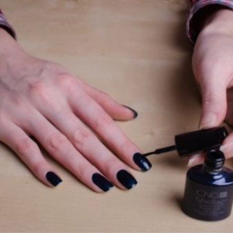 Technique manicure, providing for the use of shellac, does not imply additional nail extensions. This coating retains its own plate length, but makes it possible to achieve higher aesthetics, while increasing the durability of the result.