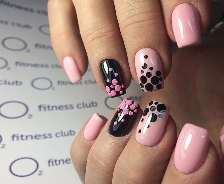 - Huge possibilities for design. Saturated and contrasting tones look best on shorter plates, complementing the image of a fashionista with charm and elegance. On long nails, a manicure in a similar design may seem vulgar and challenging.