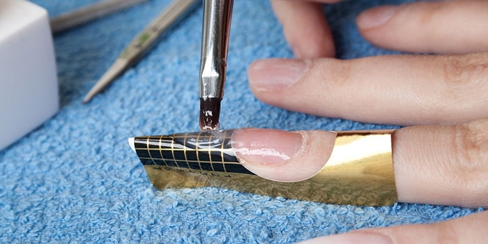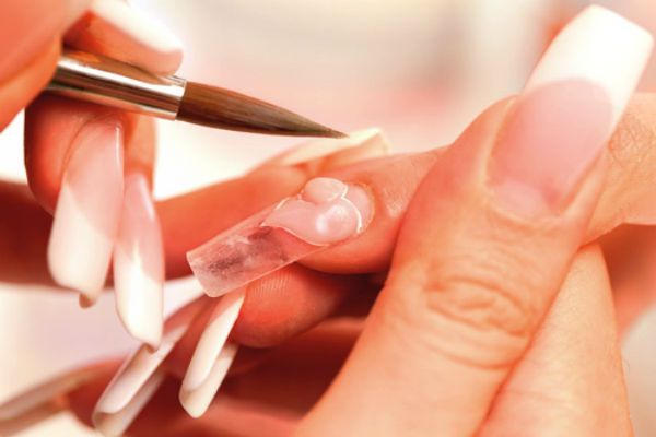 The advantage of acrylic manicure is that it does not require drying under a UV lamp. The downside is the fact that during the simulation it has an unpleasant smell. Acrylic is applied only on tips and removed with a solvent.