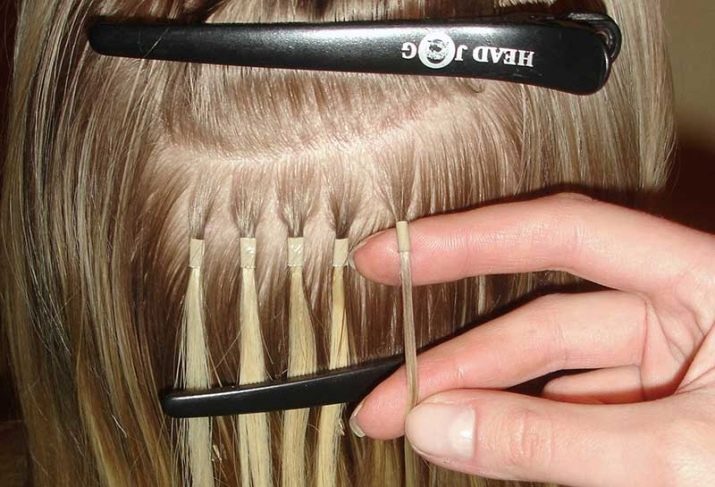 - Then the hair is cleaned of residues of glue. After that, you can proceed to the next build.