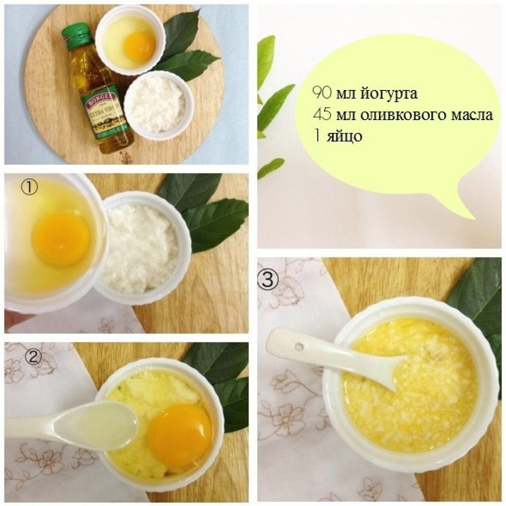 As the name implies, to prepare this product, you need to take the minimum fat yogurt in the amount of 100-200 grams. To this product should be added beaten egg and one tablespoon of linseed oil. All this must be gently mixed until a homogeneous mixture, and then applied to the hair from root to tip. Perform the procedure should be only with a brush. It remains to wait about 30-40 minutes, and then rinse thoroughly.