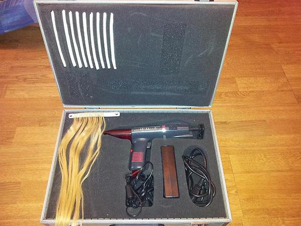 - Pistol with a special adhesive. As a rule, it is a heated resin, which allows you to qualitatively bond the material with natural curls.