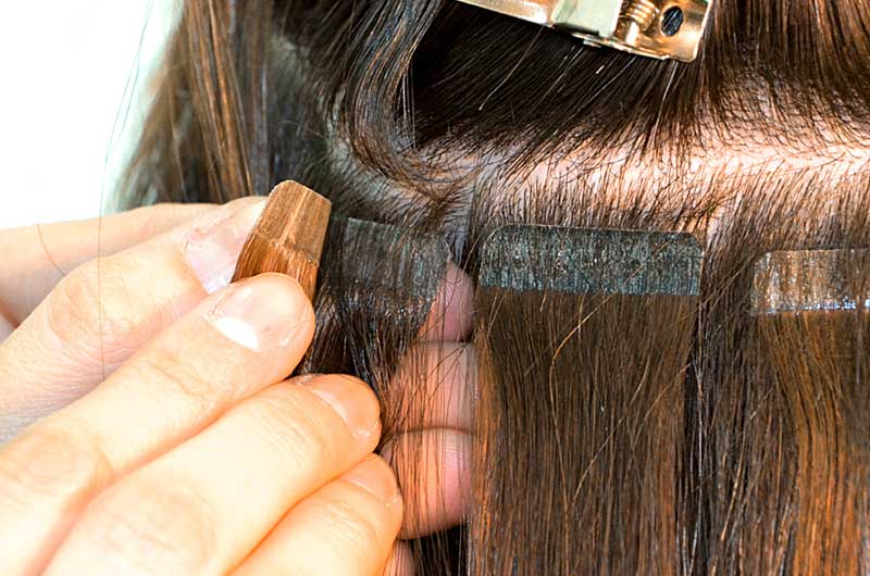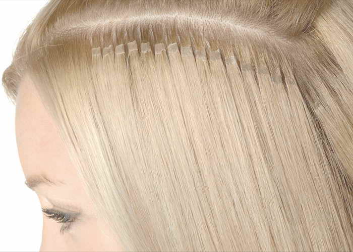 The tape technique will be the best choice for women with thin weakened hair. Due to the fact that the tape captures a rather large strand, the hair is less injured, and in addition, the probability of tangling of curls is completely excluded, which is always important for thinned hair. For these reasons, tape build-up is optimal for sparse hair due to a gentle bonding technique.