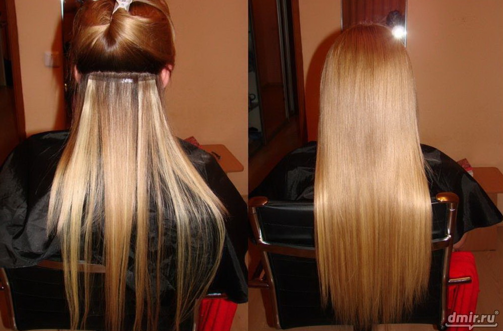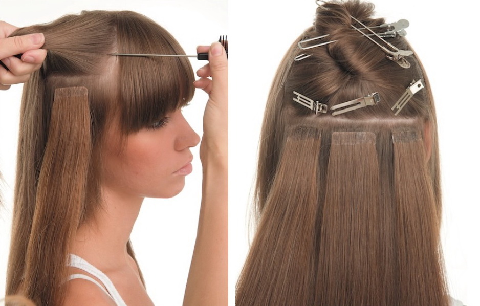 Tape and capsular hair extensions suggest an increase in their length. In the case of tape extensions, the whole procedure takes very little time, but the correction has to be done every month. This method is suitable only for owners of medium-length hair, for owners of short it is not suitable.