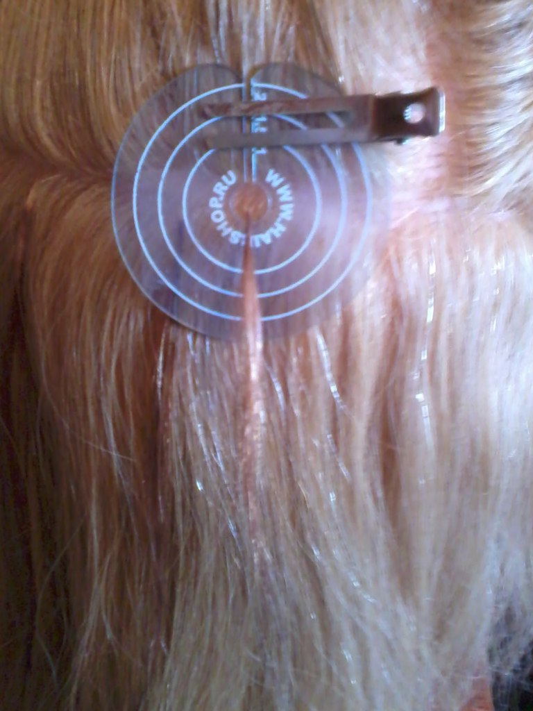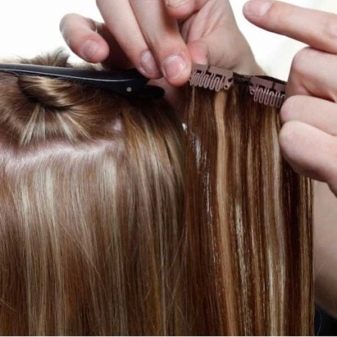 - Another way to cold build - using special clips or small metal balls to the place of attachment of native and false hair. In this case, the clips perform a simple locking function.This method is a little more time consuming (although it all depends on the size of the clips and the thickness of the curls that are being expanded), but it is distinguished by a rather high resistance to external loads.