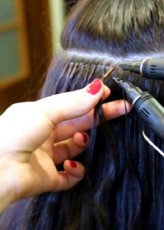 - Italian extension. The peculiarity of this type is that special resin capsules are created at the place of bonding of natural and overhead strands. This is a more painstaking procedure and will require special clamps at the attachment point. This method is considered optimal because it does not interfere with combing hair and is able to withstand heavy loads on them.