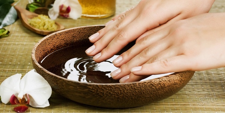 - Salt baths. If the reason for the slow growth of nails was the lack of minerals, special care will help fill it. Baths are prepared on the basis of 100 ml of warm water, 4 drops of iodine and 5 grams of sea salt. In the finished solution are immersed hands so that the mixture completely covers the nail plate. It is necessary to continue the procedure from 20 to 40 minutes. A series of procedures continue until iodine begins to paint the nails. This will mean replenishing the micronutrient deficiency in the body.