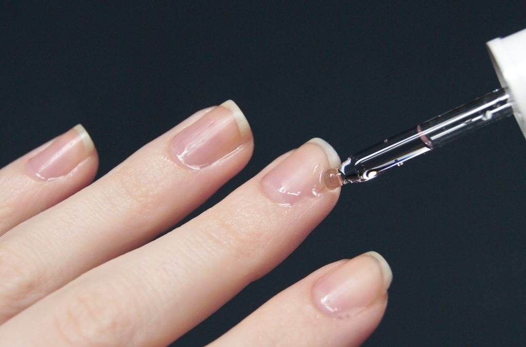 All oils (both cosmetic and essential) are rich in vitamins and are very helpful. They can be used for growth of nails and restoration after manicure or polishing.