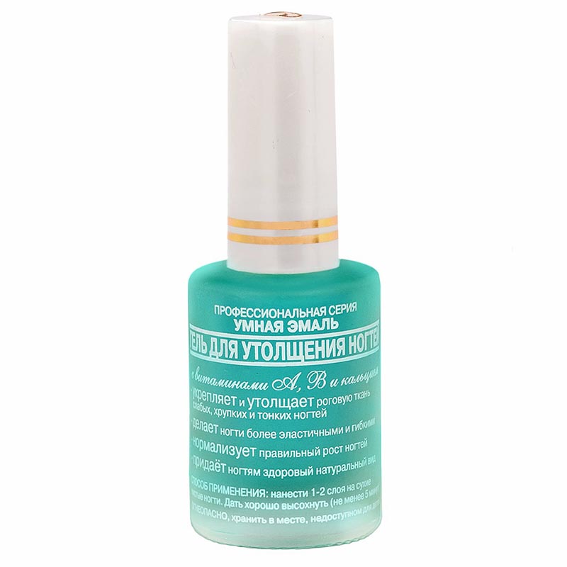 - "Gel for thickening nails." This gel is ideal for strengthening the nail plate, especially if your nails are brittle, devoid of natural pigment. Improvement will occur due to the high level of calcium in the composition and collagen.