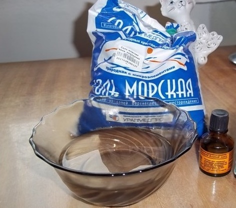 - Prepare the solution. To do this, pour warm water (36-42 ° C) into a convenient container. Add salt and other necessary ingredients to it, according to the recipe.
