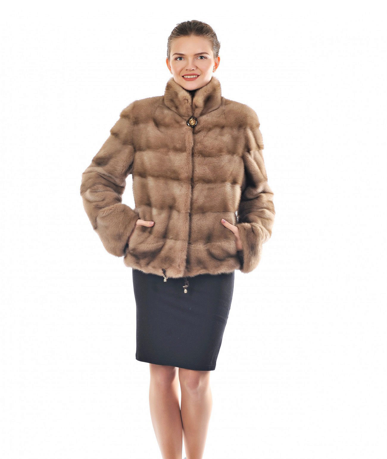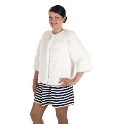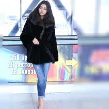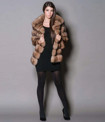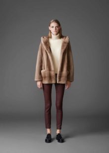 - The permissible length is in the range of 60–70 cm, which is due to the lack of the need to stay outside for a long time. In addition, when driving a car, the long floors of the fur coat will interfere, and the fur will quickly wipe out on the seat. A short fur coat, as a rule, is cheaper than its long counterpart, and it looks no worse at the same time.