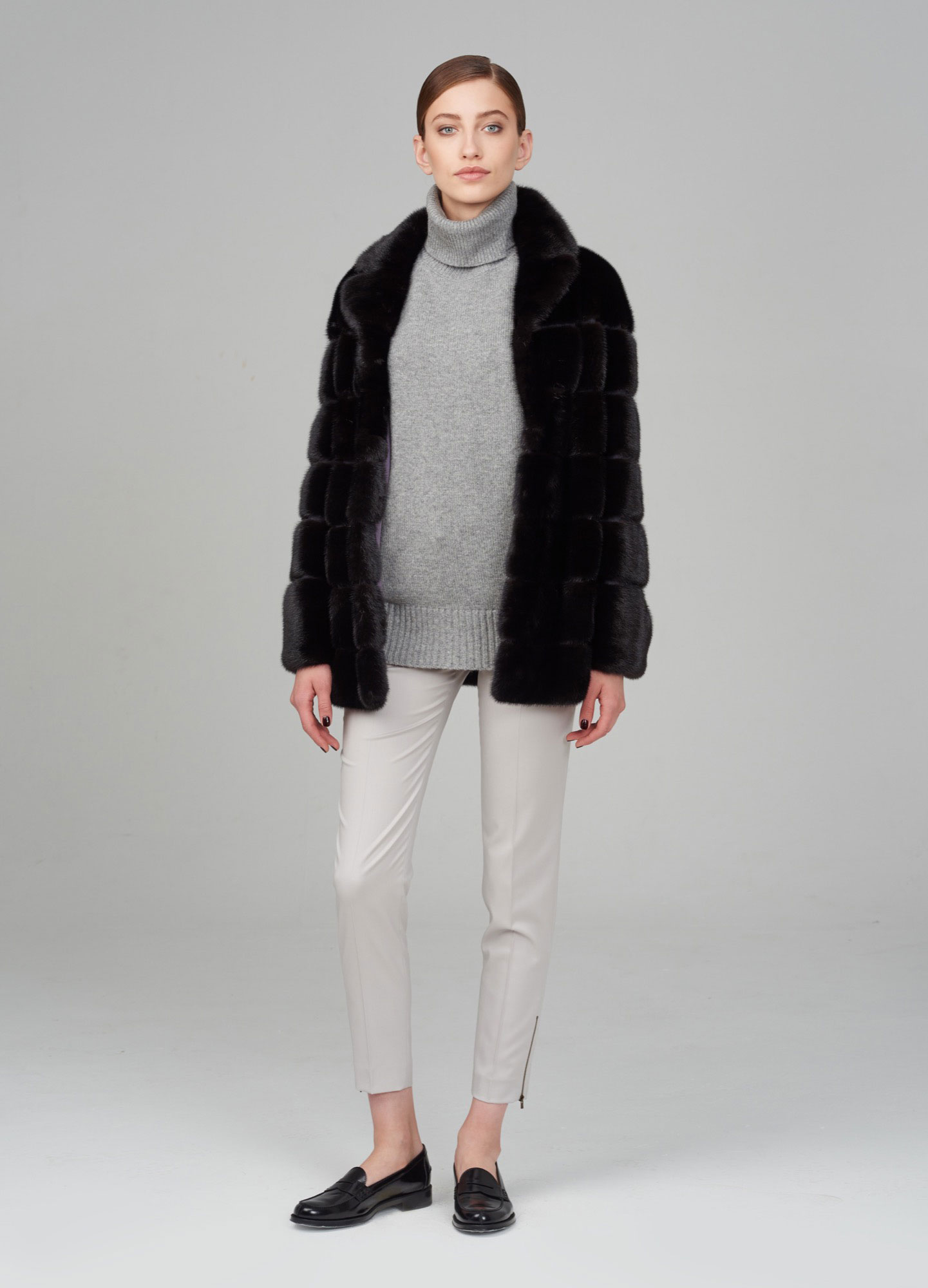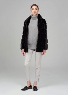 Tight trousers, on the contrary, can be chosen without a drop of fear, in combination with them mink coats look quite presentable. Primary colors are black, dark brown and deep blue. These three variants of trousers can be considered universal, since all shades of a mink coat look equally well with them.