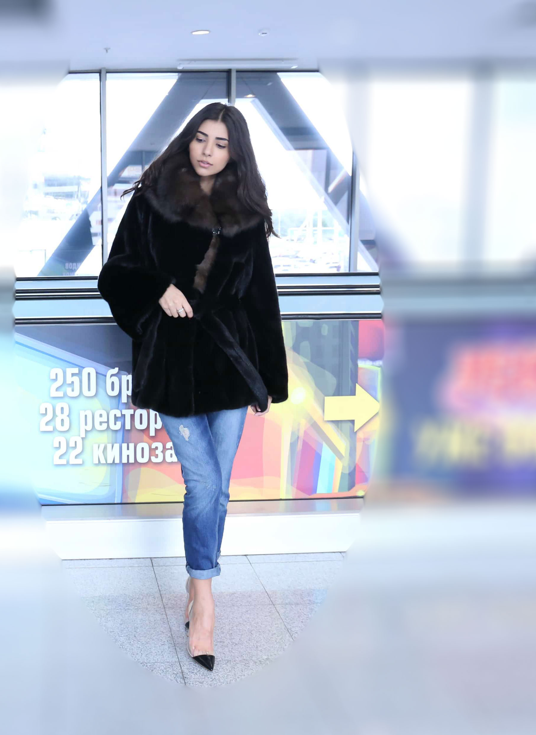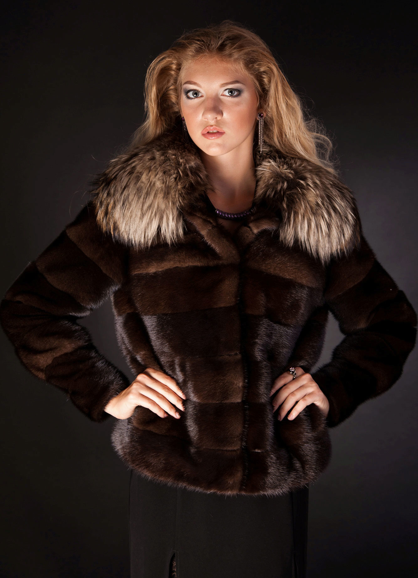 - there shouldn't be a lot of accessories, because the fur coat is already the main decoration, which may require a pair of earrings or a bracelet;