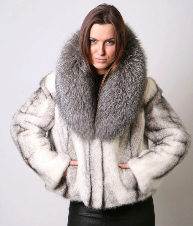 - One of the latest trends in the world of fur is transverse. In such models, wide strips of fur are stitched horizontally. Some models embody a smooth transition from dark to light. It is interesting to look mink coats with a cross, in which the fur stripes alternate with the skin. True, such options for mink coats of avtoledi are not suitable for all women. The shape should be perfect so that the transverse model does not land it and does not add volume.