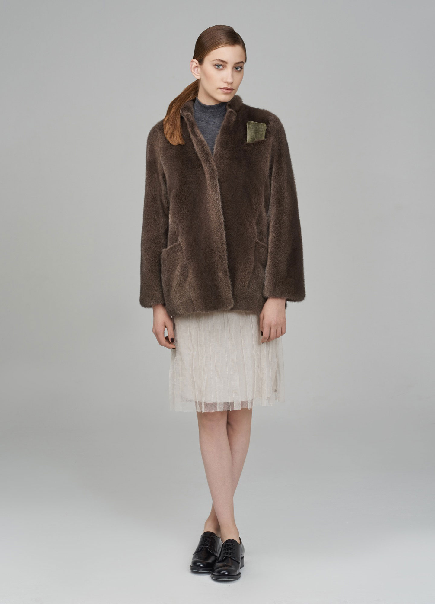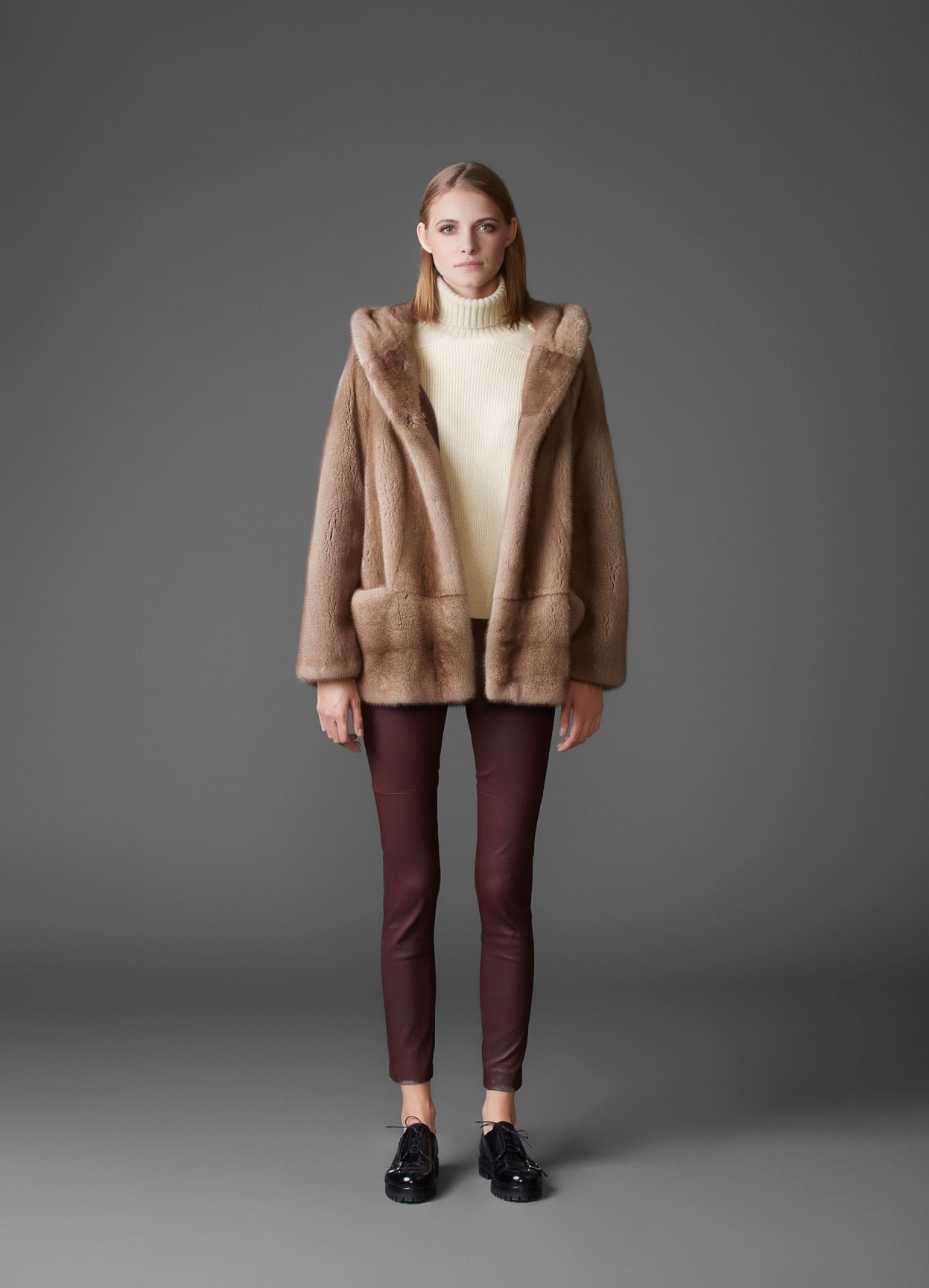 - The full figure will look most advantageous in a nut-colored fur coat, with a dark brown shade, in pastel colors. You can also consider the shade of biscuit and cinnamon.