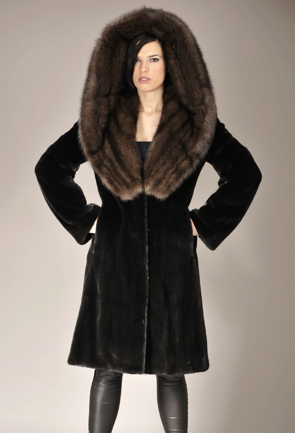 - trimmed with other types of fur - for example, a luxurious version of a BLACKGLAMA fur coat with a hood, collar or cuffs of lynx fur, sable, chinchilla or mink of a different color;
