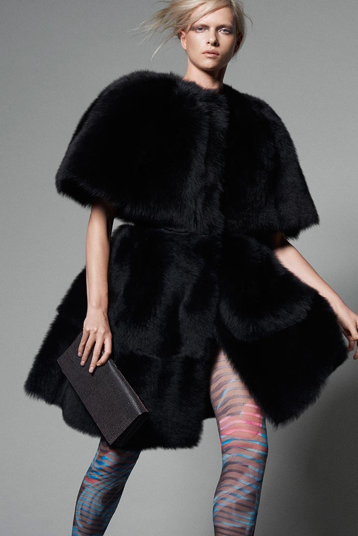 The unpredictable model of a short fur coat-robe with a deep neckline and the lower part, also composed of pieces of fur, is an absolute lack of functionality, a living embodiment of sensuality.