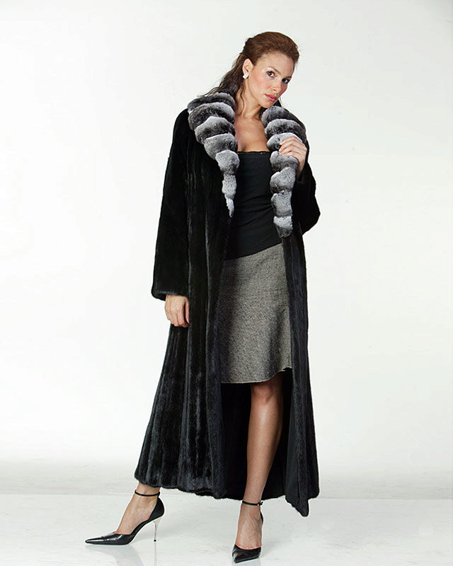 For those to whom only a little BLACKGLAMA - a luxurious chinchilla collar on a long coat.