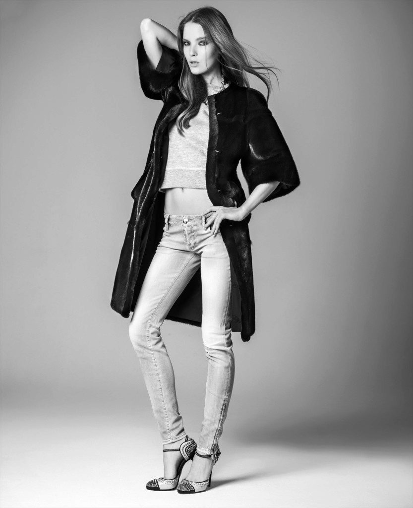 Often there is the opinion that BLACKGLAMA should not be worn with jeans, as this greatly simplifies the whole image - the simple style of the mink coat with a turn-down collar is emphasized to refute this statement.