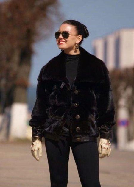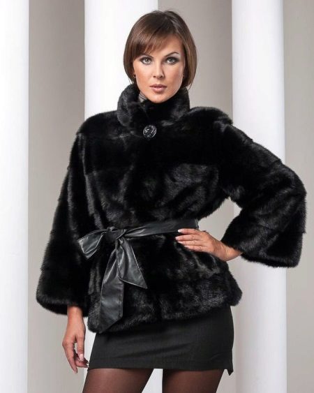 And to a fur coat-jacket with a small collar-collar, wide sleeves and a leather belt, tied with a bow, a mini-skirt is perfect.