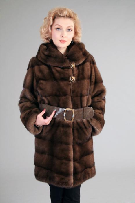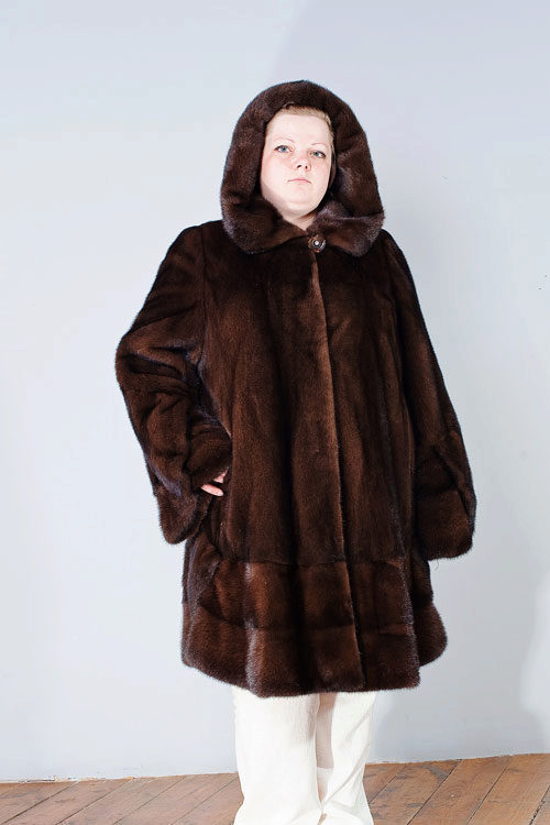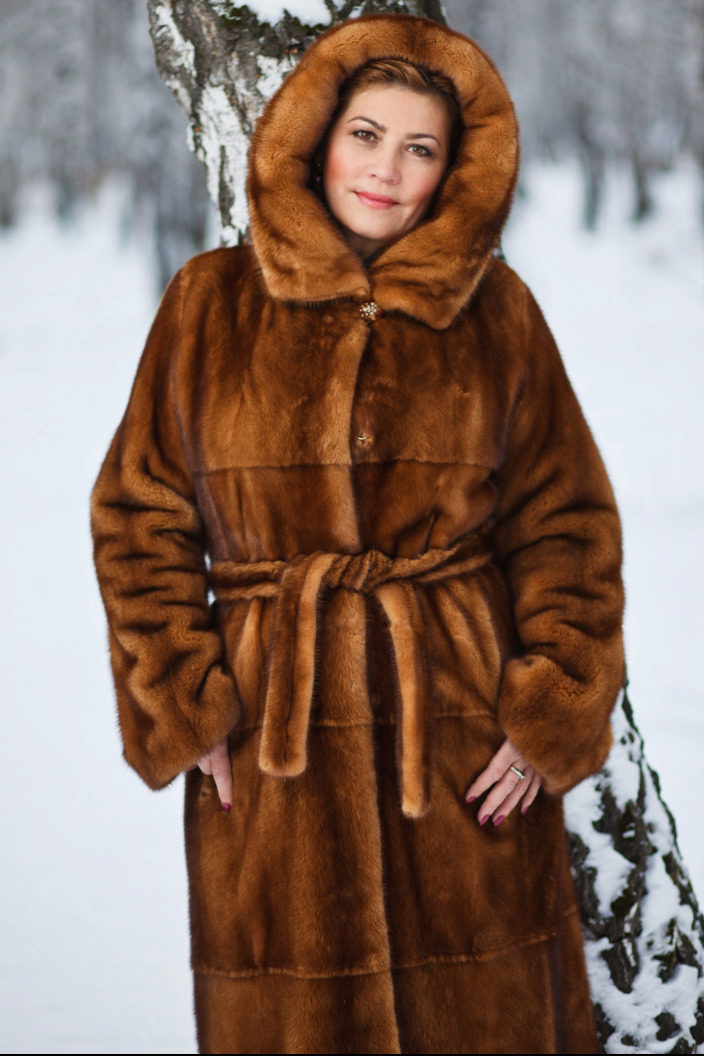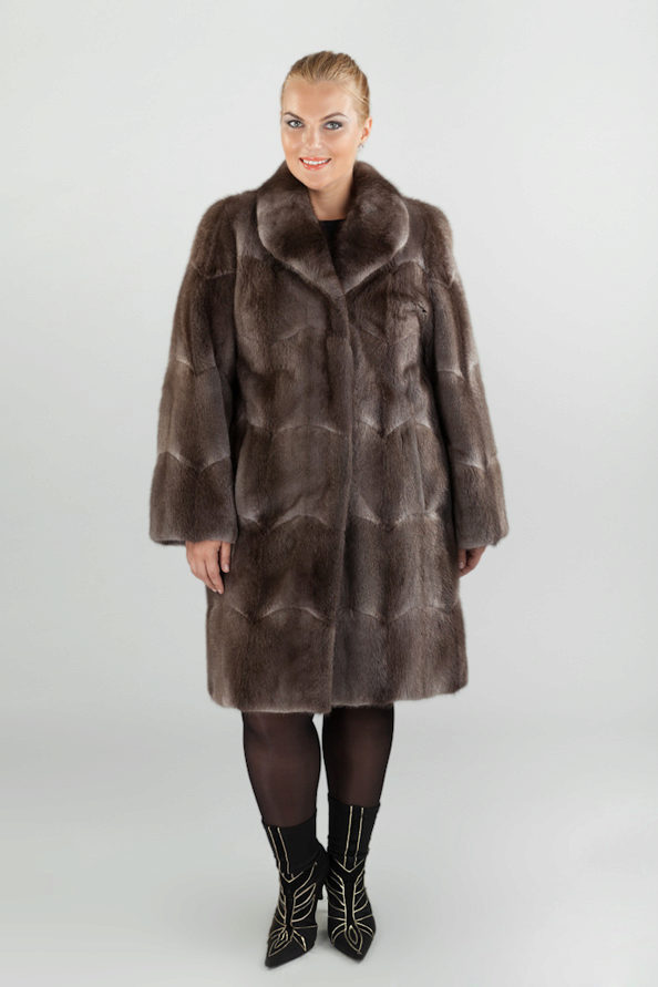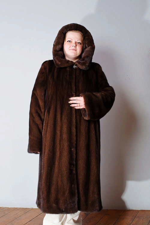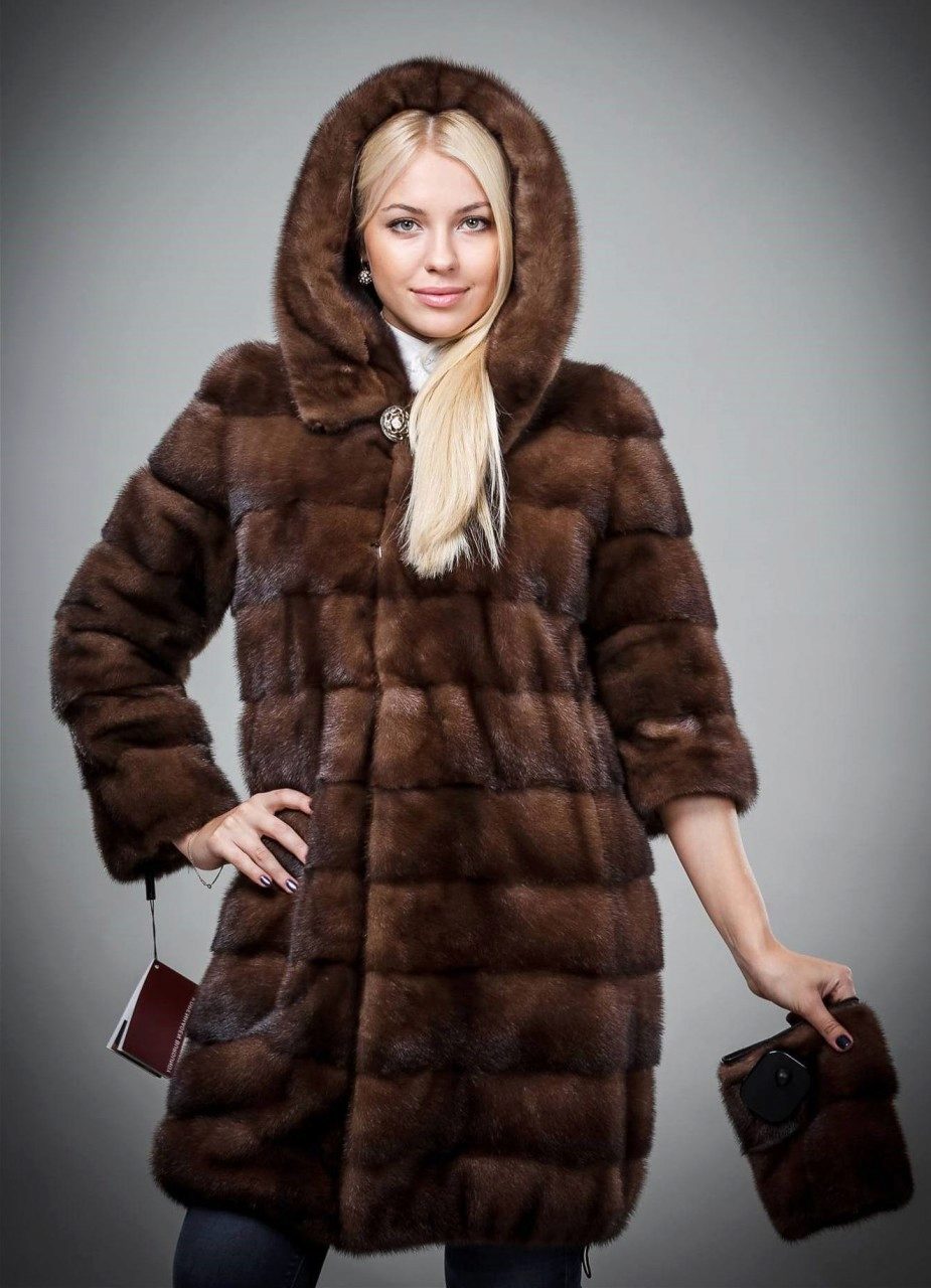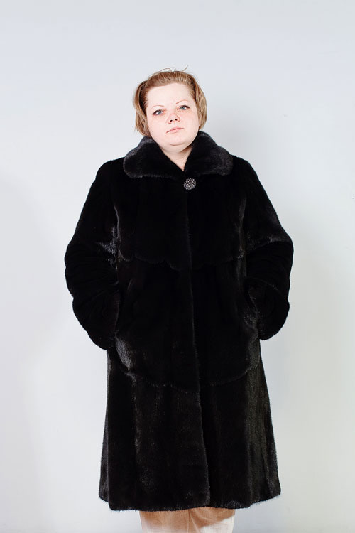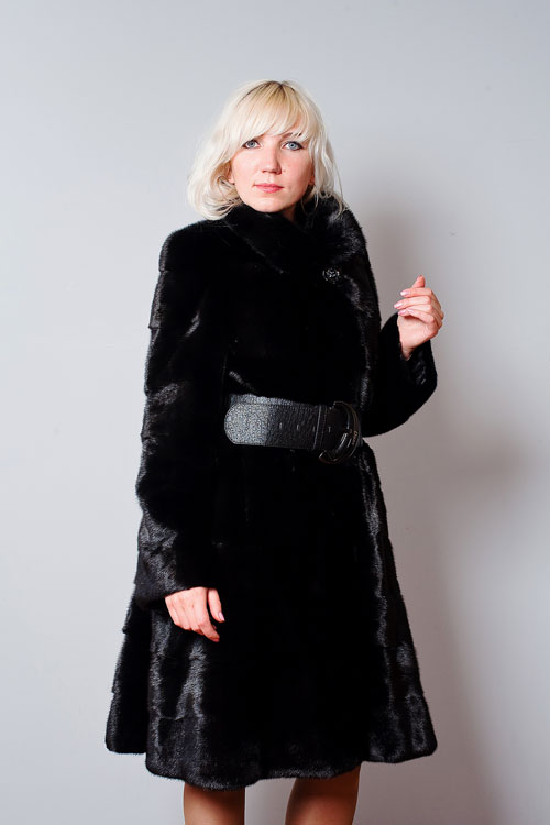 Looks great straight cut of mink. The color, beautiful with modulations, focuses attention on the fur coat itself, while distracting from the forms of its owner. The model is so bright and interesting by itself that any accessories would be superfluous.
