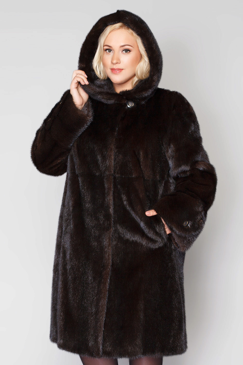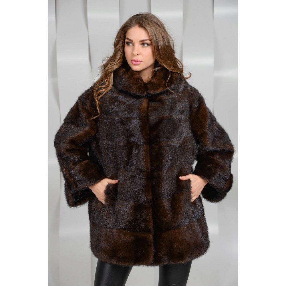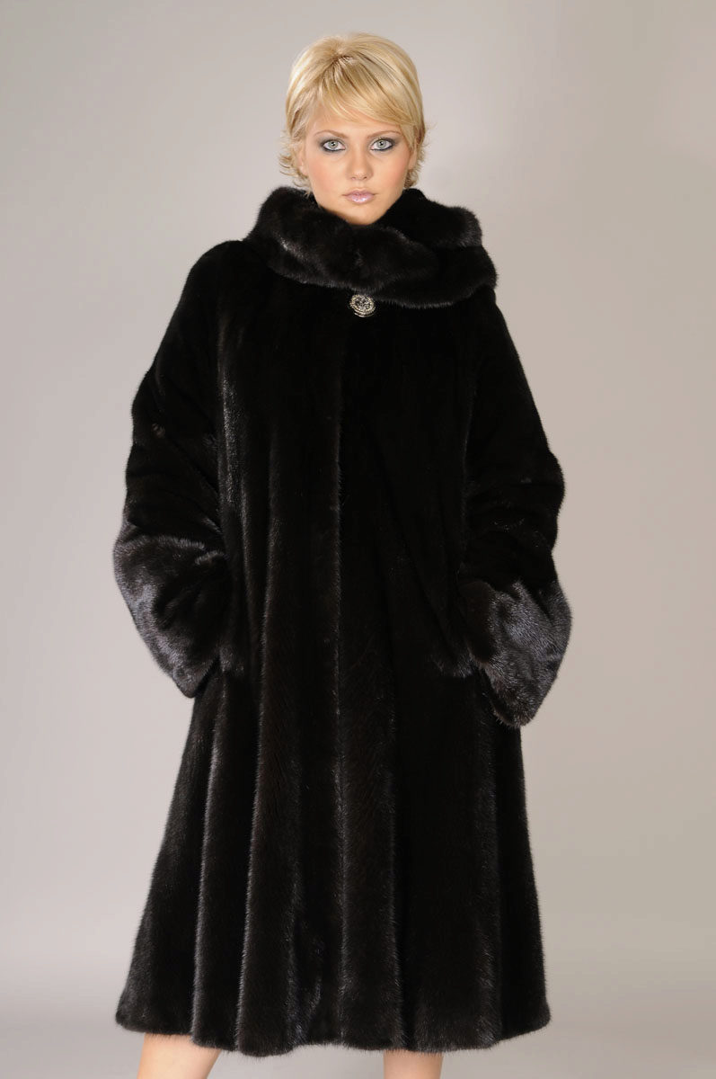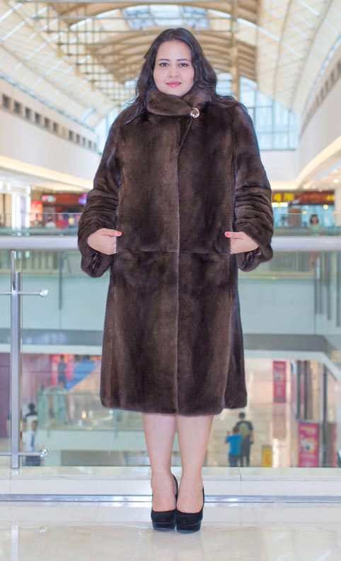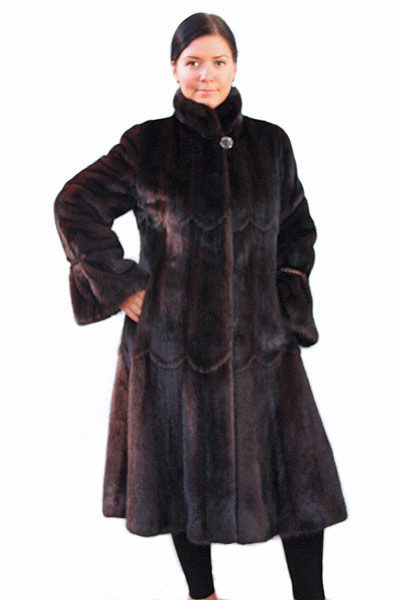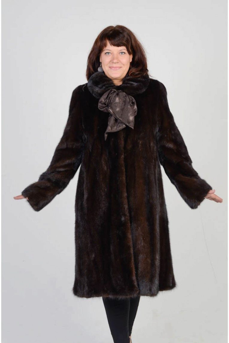 Looks great straight cut of mink. The color, beautiful with modulations, focuses attention on the fur coat itself, while distracting from the forms of its owner. The model is so bright and interesting by itself that any accessories would be superfluous.
