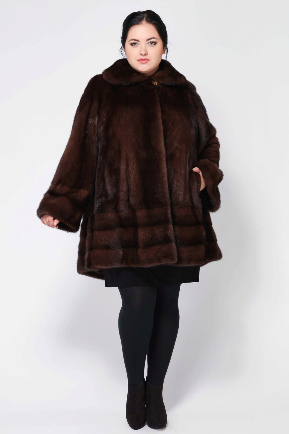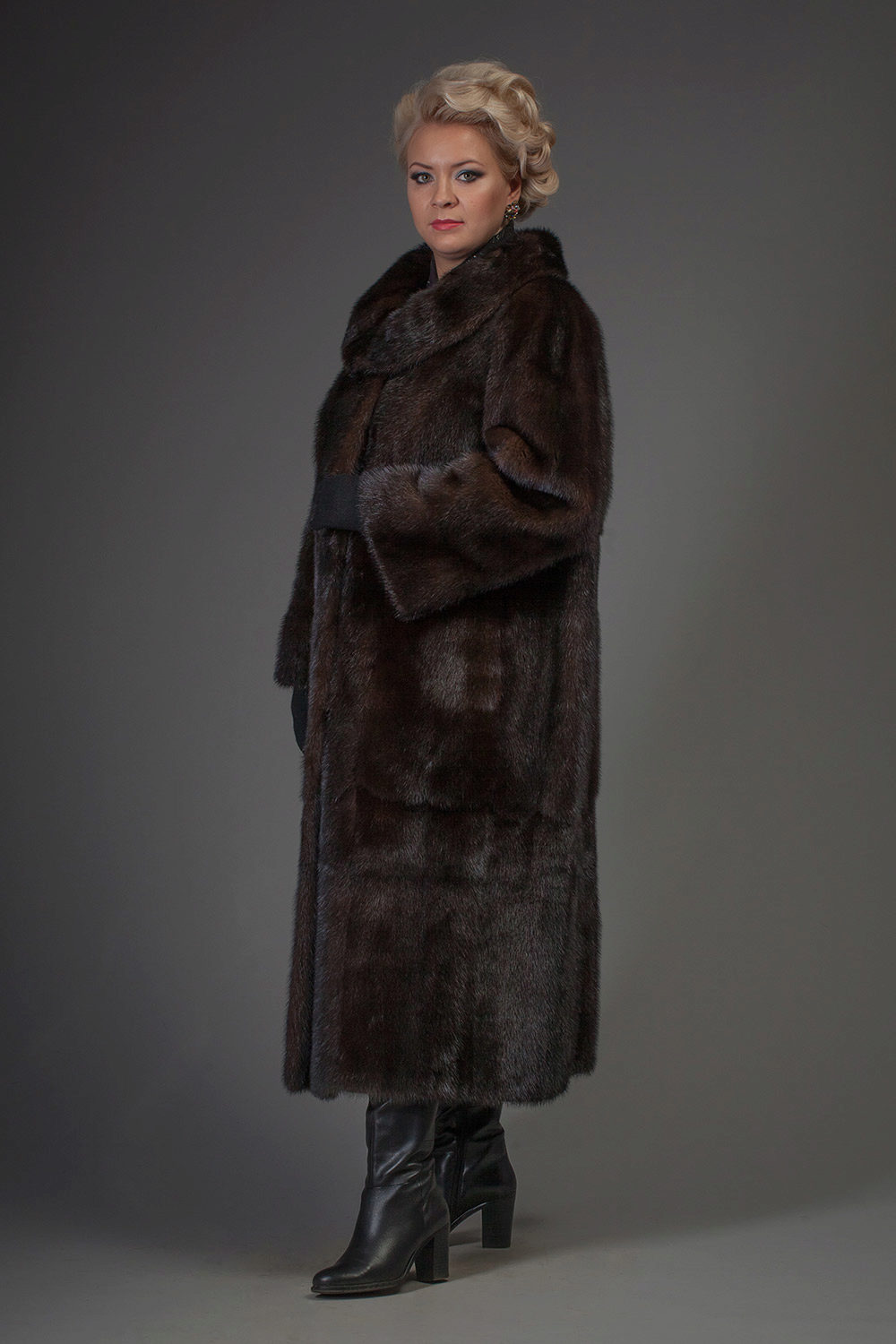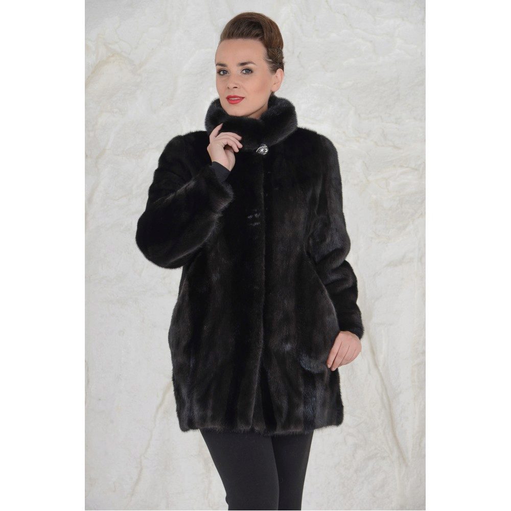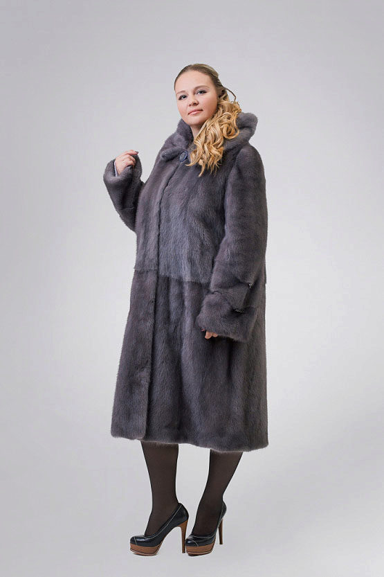 Full girls are best suited for dark colors.However, it is worth paying attention to the gray color with darkening at the tips - a fur coat from such a mink makes the silhouette elegant and attracts attention. Slimness will give the model of black mink with a purple or blue tint, but this is the elite fur coats with the appropriate price tag.