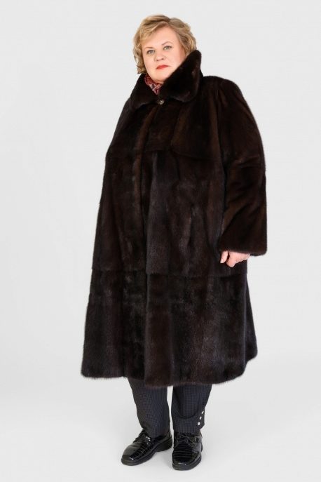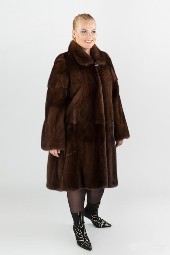 Straight knee-length fur coat is a universal option for women with XXL sizes.